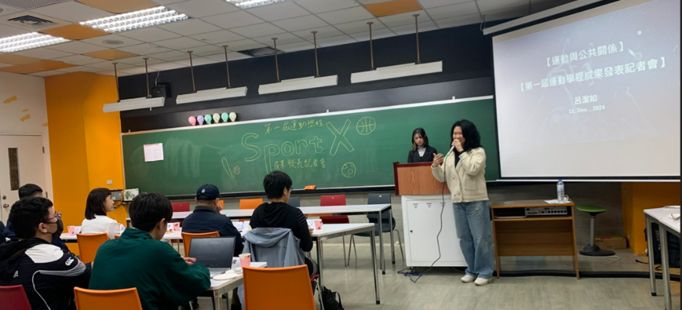 政大運動產業與文化學士學位學程(SportX運動學程)113學年度第1學期開設「運動與公共關係」課程,1211日首度舉辦「模擬記者會」,以「第一屆運動學程成果發表」為主題。記者會流程與內容全由修課學生企劃發想、分組執行。多位運動學程學生在會中分享學習成果,並將夢想投入「時光膠囊」!