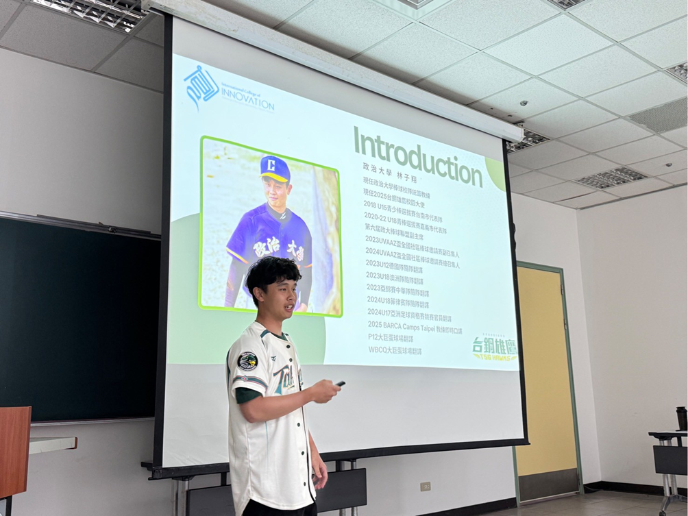 政大運動學程林子翔同學進行自我介紹與主題分享(照片來源:運動學程張瑋倢同學)