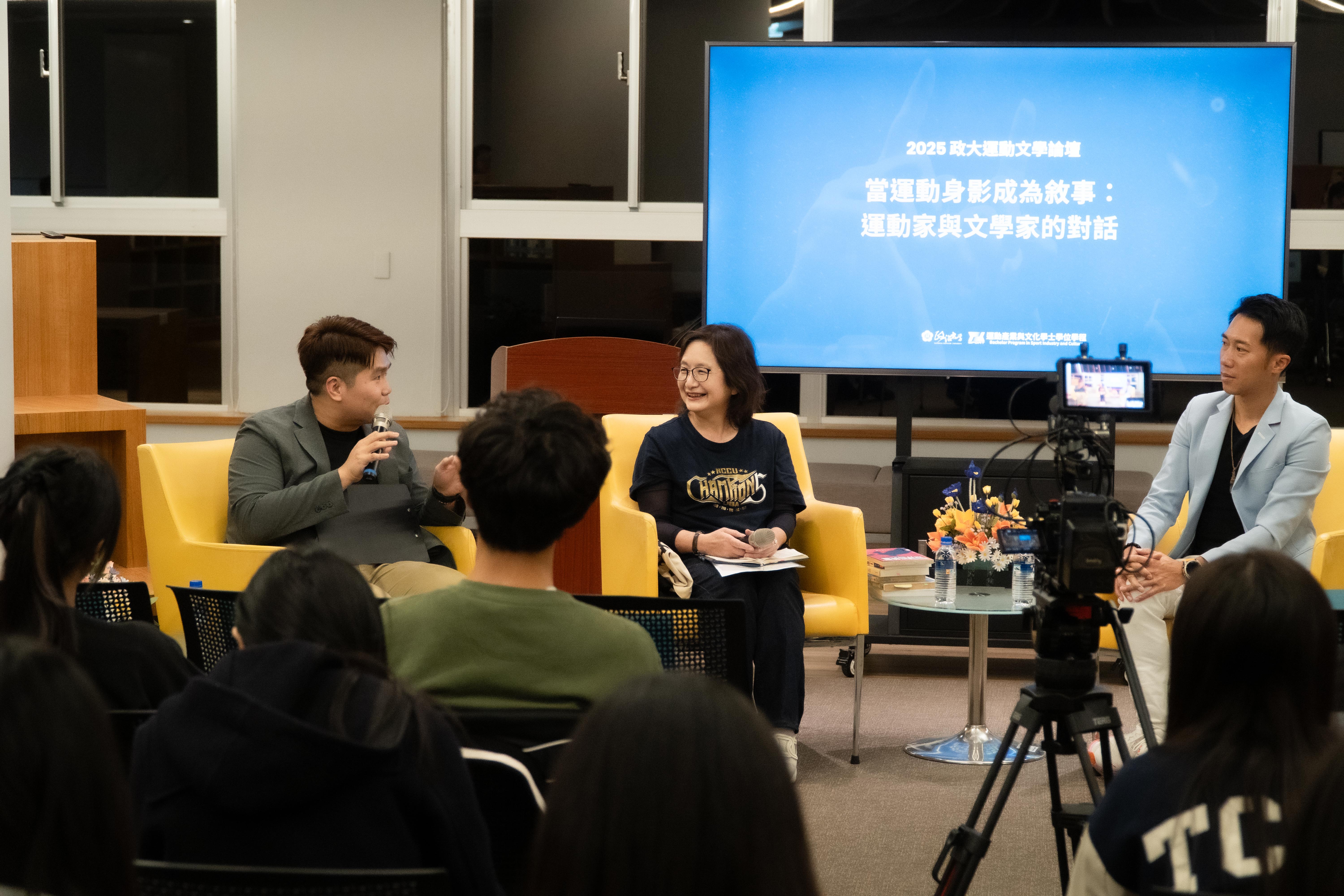 運動學程舉辦「2025政大運動文學論壇」,邀請陳彥博與李靜宜分別以「運動家」與「文學家」身份進行跨界對話(照片來源:運動學程)