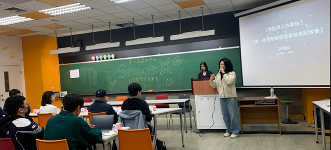 記者會以「第一屆運動學程成果發表」為主題,除安排運動學程主任呂潔如分享運動學程規劃與理念,特別邀請政大公共事務中心執行長朱詠薇、體育室主任王清欉、運動學程助理教授孫秉宏、助教林怡璇、及雄鷹籃球隊行銷經理侯碩到場參與指導。